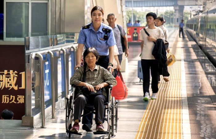 无锡站"太湖明珠"雷锋服务站工作人员为重点旅客出行提供帮扶。张博伦 摄