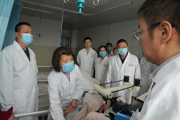 在武定县人民医院,国家巡回医疗队北大六院专家团队与县医院医护人员组成联合诊疗小组,深入内科、精神科等重点科室开展教学查房。针对20余例精神障碍合并躯体疾病、老年心理障碍等疑难复杂病例开展教学查房。专家通过规范示范问诊查体、细致解读病情研判思路、精准指导用药方案,重点围绕基层诊疗难点进行现场教学。