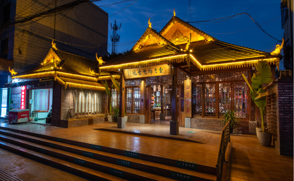 勐养云上乡愁书院位于西双版纳傣族自治州景洪市勐养镇,该书院在建筑上充分融合了傣族特色,以干栏式建筑设计为主,室内竹编织的三角屋顶、独特的竹编吊灯、摆放书籍的龙舟、悬挂空中的油纸伞,再加上橱窗外绿植和陶罐的点缀,让每一位前来阅读的读者,都能感受置身傣寨、雨林的舒适感和松弛感。