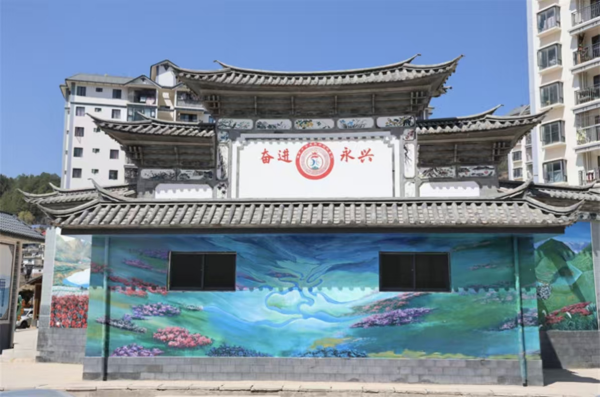 永兴社区文化活动中心是集阅读求知、文艺培训、文化娱乐、非遗传承、乡愁记忆于一体的多元化、场景化的公共文化空间。该活动中心设有两层,一楼的村史馆里摆放着社区居民搬迁前的各种老旧生产生活用品和一些工艺品,记录着搬迁群众曾经的故事;二楼的文化惠民书屋,有文学、科技、少儿读物等各类书籍8000余册,兼顾了各类读者的阅读需求。
