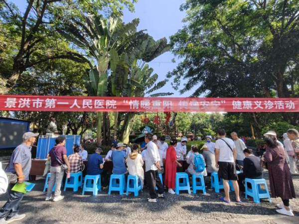 景洪市第一人民医院老年病科联合肿瘤科、药学部及景洪市999社区卫生服务中心,在孔雀湖健康主题公园举办重阳节联合义诊活动。