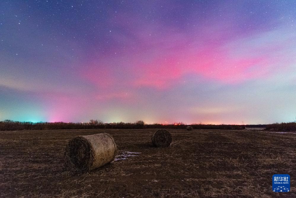 11月12日在位于黑龙江省黑河市的北大荒集团北安分公司长水河农场有限公司拍摄的绚丽极光。