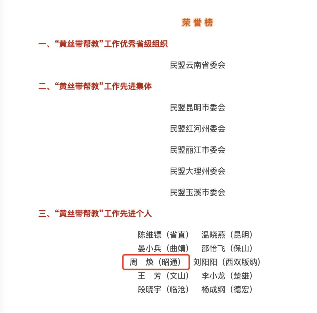 原标题:凌云(昭通)律师事务所周焕律师荣获民盟中央、司法部 “黄丝带帮教”工作先进个人表彰