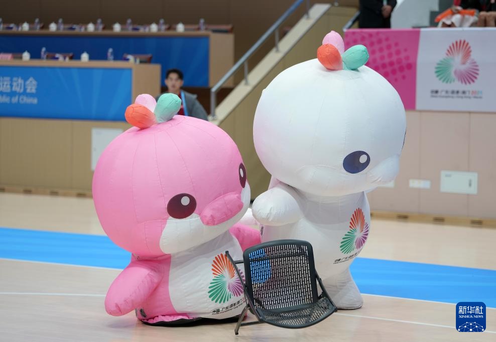 12月13日,吉祥物“乐融融”“喜洋洋”在比赛开始前活跃气氛。