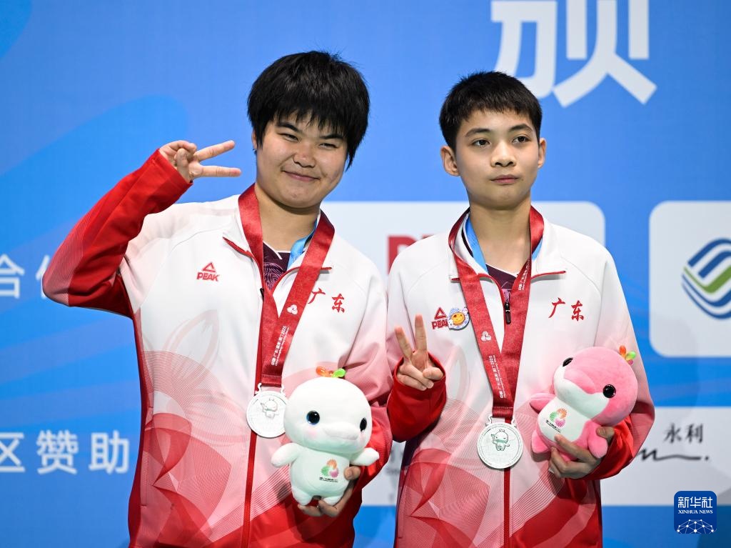 12月13日,广东一队组合禅卫帅/李倩仪(左)在颁奖仪式上。他们获得混合12-15岁组双打A组亚军。