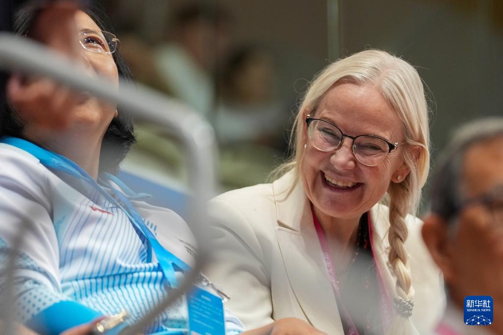 12月13日,国际乒乓球联合会主席佩特拉·索林(右)在现场观赛。