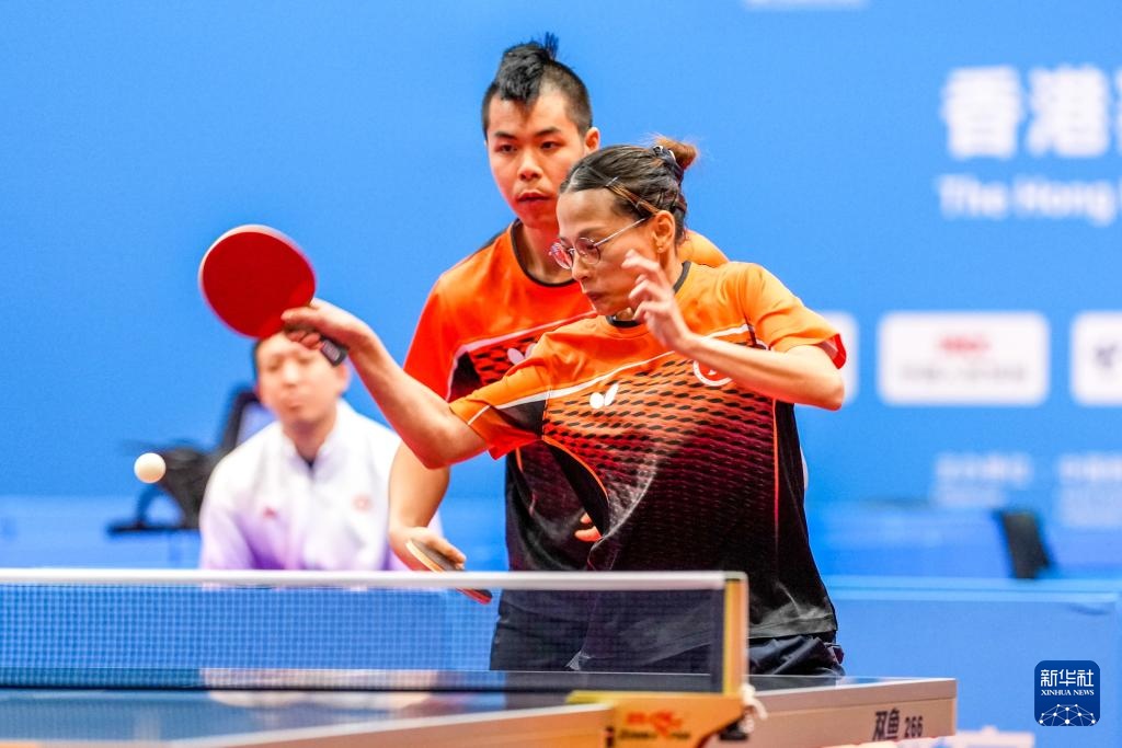 当日,全国第十二届残疾人运动会暨第九届特殊奥林匹克运动会乒乓球TT11项目混合双打比赛在香港进行。