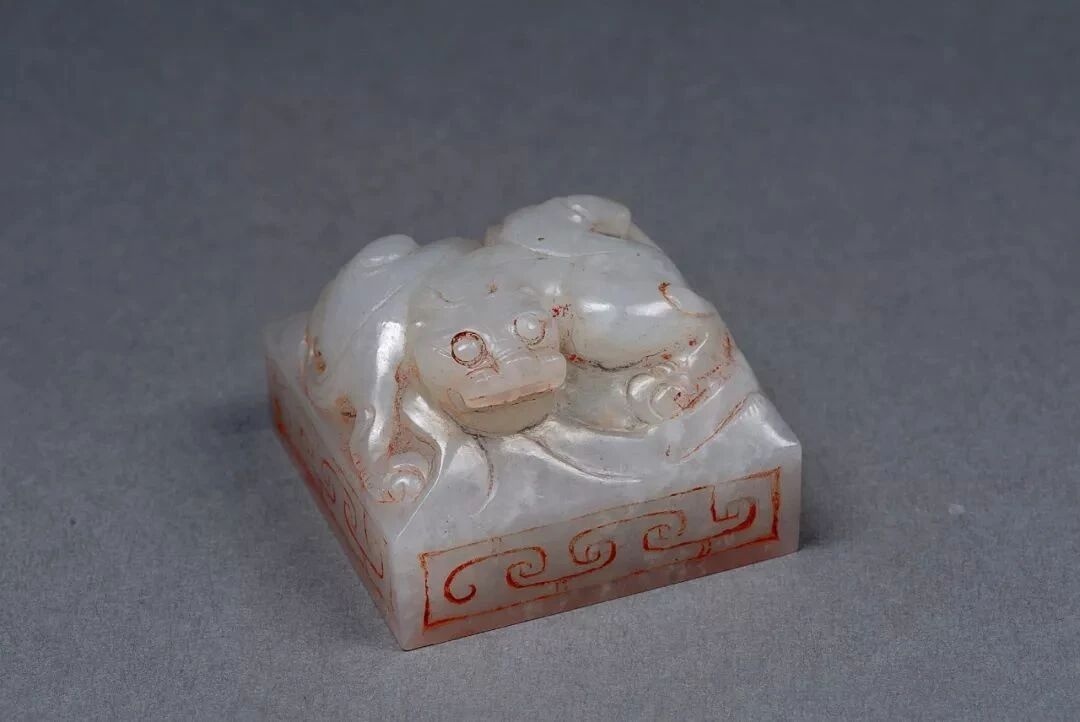皇后玉玺 汉代。1968年发现于咸阳市韩家湾。印面方正,边长2.8厘米,重约33克。玺印为和田玉质地,玉质温润洁白,无丝毫沁色:顶部用螭(chī)虎做纽,四面刻有云纹,印面篆书“皇后之玺”四字,书体流畅,刀法娴熟。专家推断,它可能是汉高祖刘邦的皇后——吕雉生前所用的玺印。现藏于陕西历史博物馆。