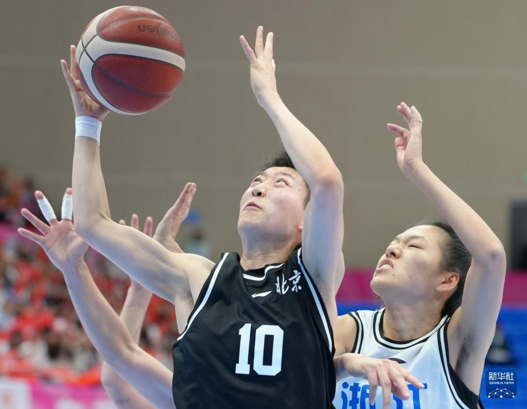 12月14日,北京队球员黄雪雪(左)在比赛中上篮。