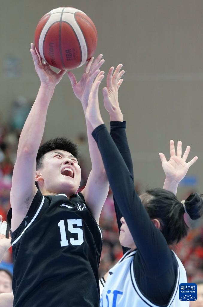 12月14日,浙江队球员周晨佩在比赛中上篮。