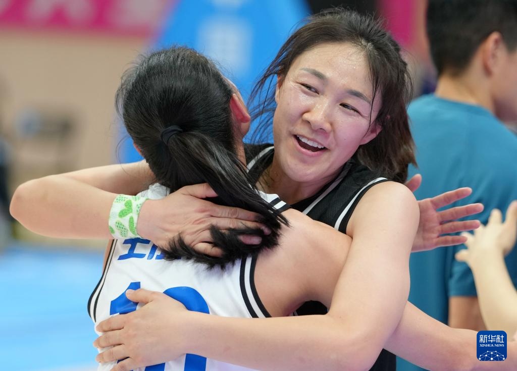 12月14日,浙江队球员王成雨(左)与北京队球员佟玉竹在比赛后拥抱致意。