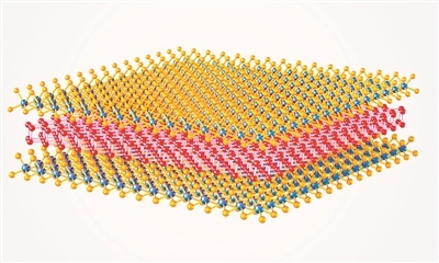 中国科学家研制的二维金属材料之一——单层二硫化钼封装的二维金属铋。图片来源:科学网