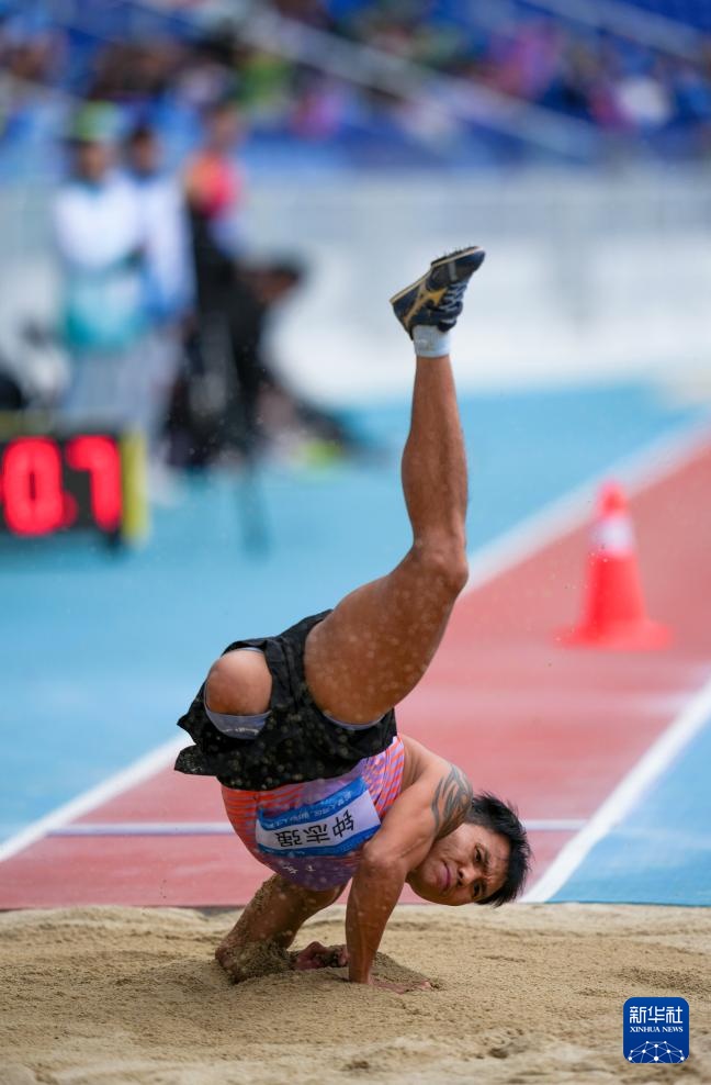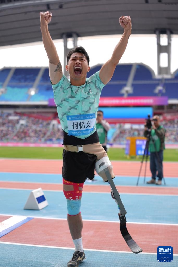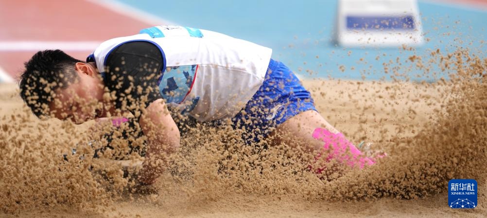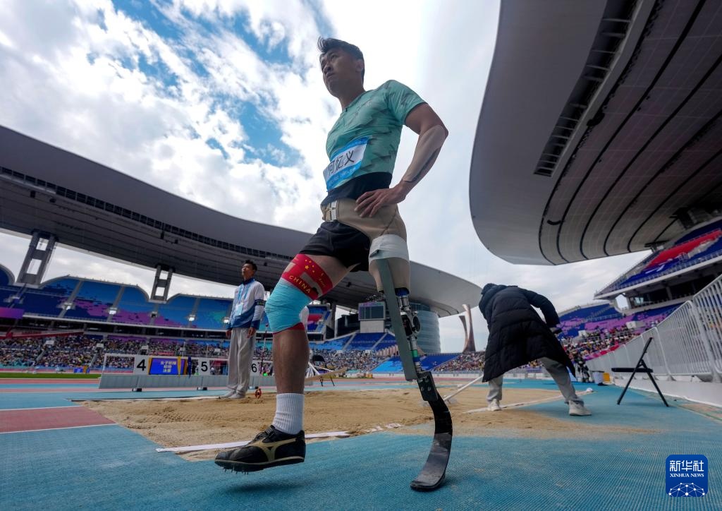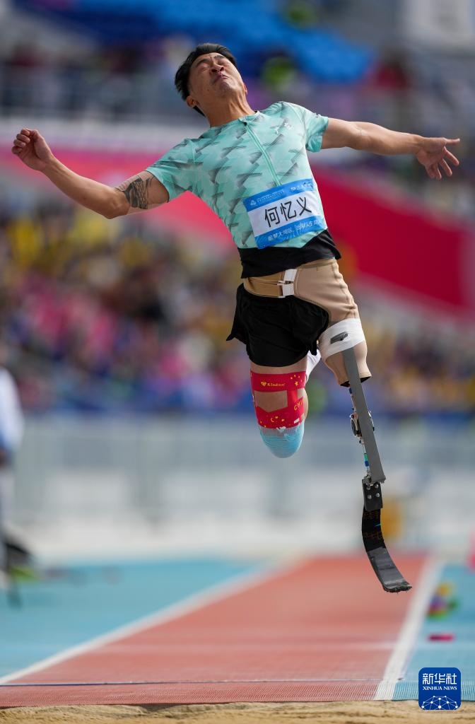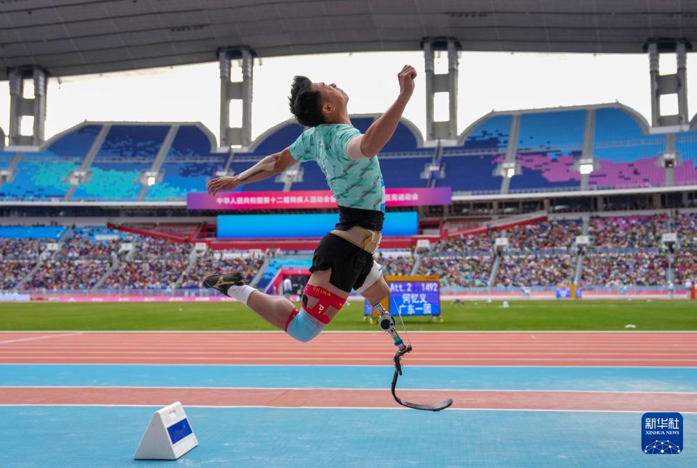 12月14日,广东一团队选手何忆义在男子跳远T63级决赛中试跳后。最终,他获得冠军。