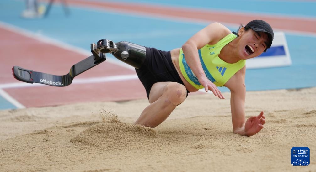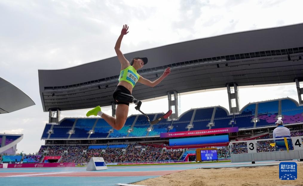 12月14日,陕西队选手成红红在女子跳远T63级决赛中试跳。最终,她获得亚军。