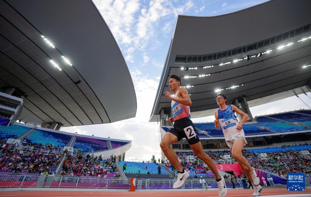 12月14日,云南队选手方远伦(左)在男子10000米听障决赛中。最终,他获得季军。
