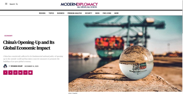 近日,知名期刊《现代外交》(Modern Diplomacy)网站发表了一篇观点文章,高度评价中国始终将对外开放作为根本性国家政策,通过一系列切实举措推动构建开放型全球经济,为全球经济发展作出卓越贡献。