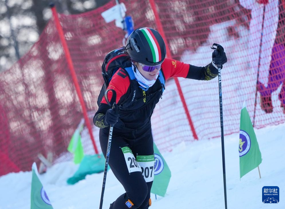 当日,2025年全国滑雪登山锦标赛短距离项目在吉林省吉林市中旅松花湖度假区举行。