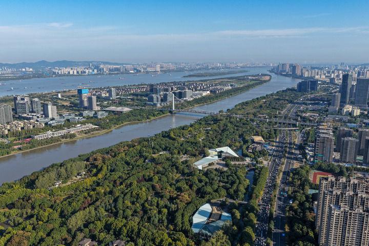 这是2025年11月18日拍摄的长江南京段滨江风光带(无人机照片)。新华社记者 李博 摄