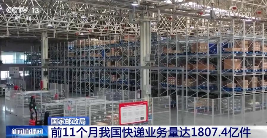 国家邮政局发布的数据显示,前11个月,全国快递业务量达1807.4亿件,同比增长14.9%。