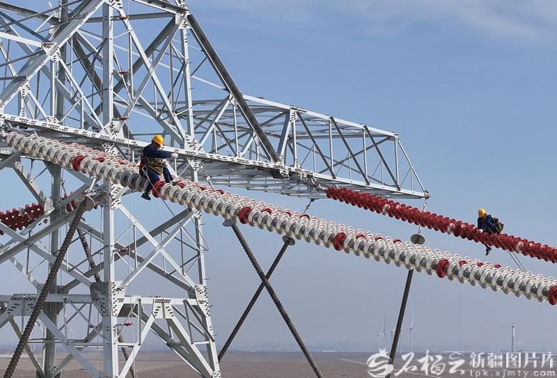 4月30日,新疆送变电有限公司员工对哈密一重庆±800千伏特高压直流输电工程线路进行验收。张利民 摄