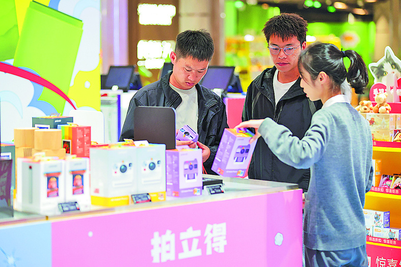 12月2日,顾客在cdf海口国际免税城选购拍立得相机。 本报记者 骆云飞 摄