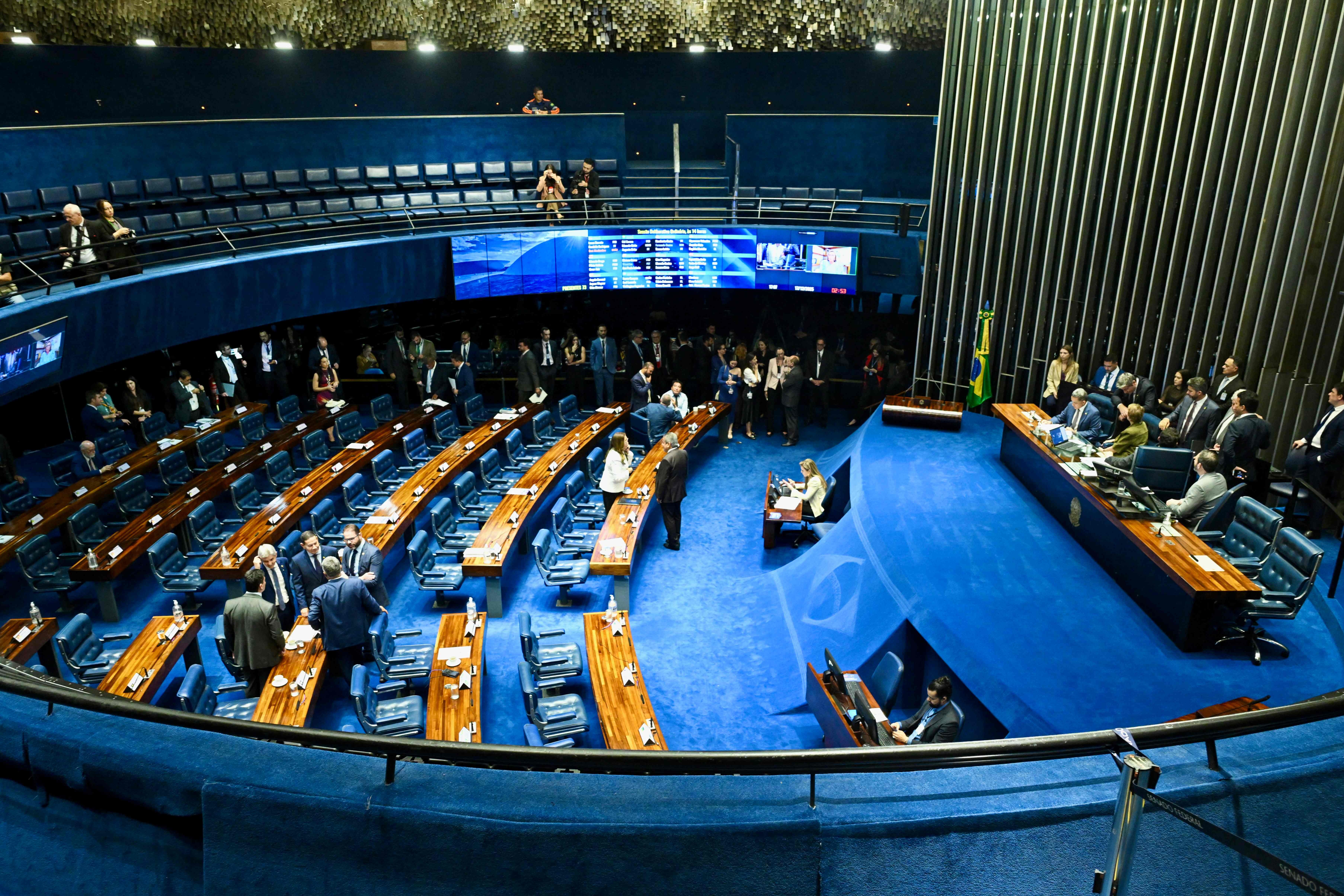 12月17日,巴西联邦参议院全体会议讨论减轻博索纳罗刑期的法案。(法新社)