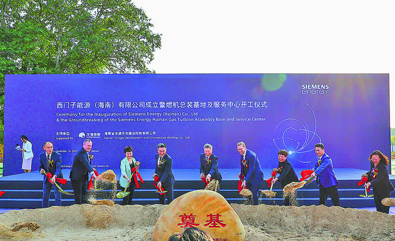 12月18日,海南自贸港正式启动全岛封关后首个制造业标志性外资项目——西门子能源(海南)有限公司在洋浦经济开发区成立,并同步开工建设燃机总装基地及服务中心。图为奠基仪式现场。本报记者 骆云飞 摄