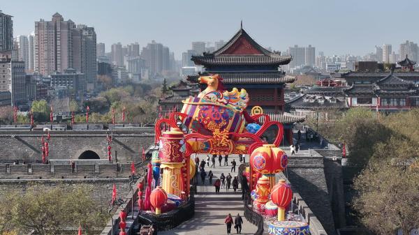 2026“长安灯会·西安城墙”花灯已初步搭建(央广网记者 侯凯奇 摄)