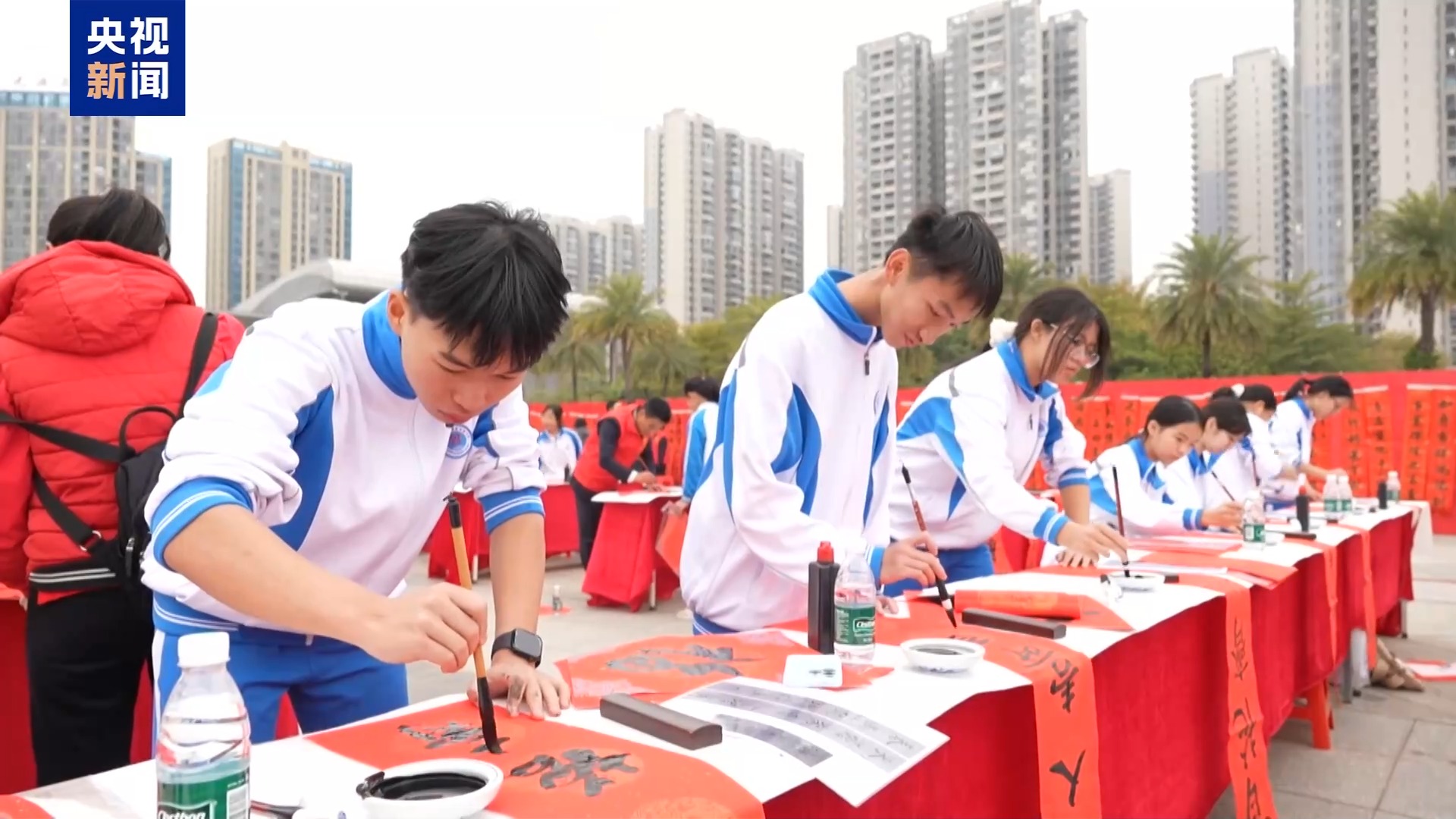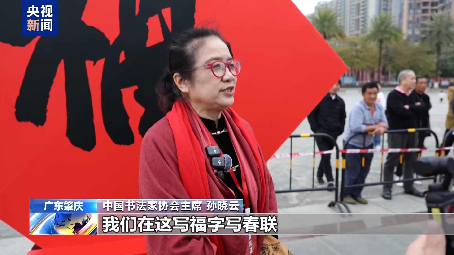 中国书法家协会主席 孙晓云:我们在这儿写福字、写春联,祝全球的华人华侨春节快乐,身体健康,阖家团圆。