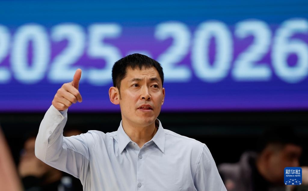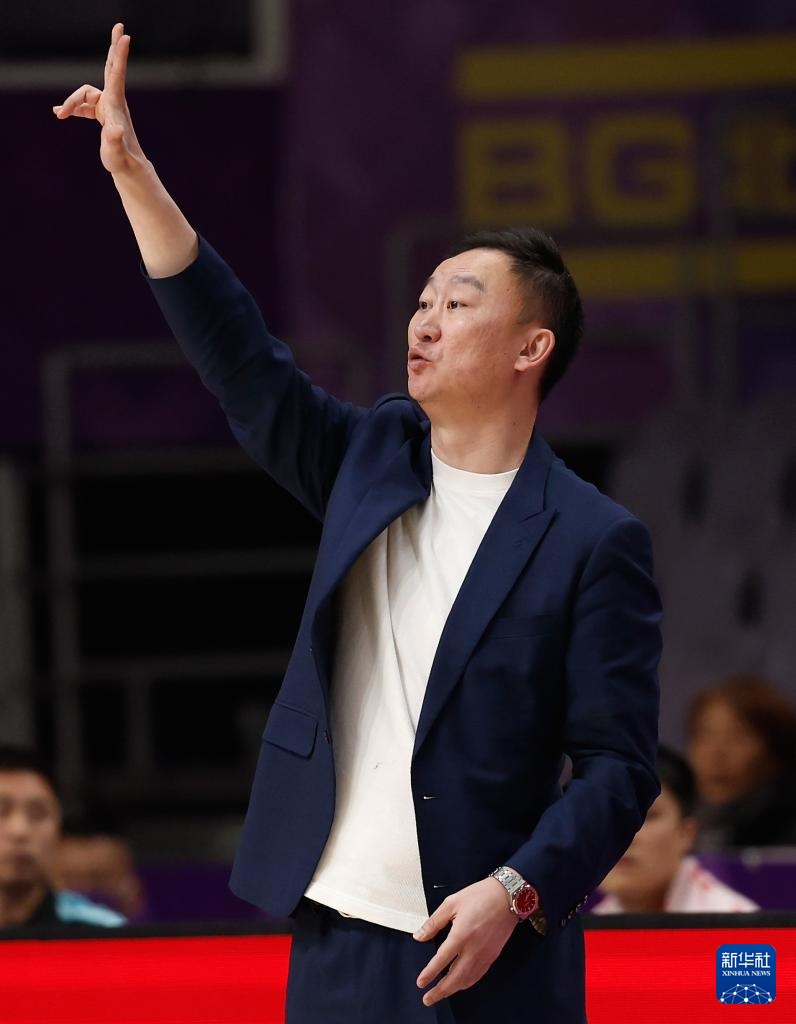 1月30日,青岛崂山啤酒队主教练刘维伟在场边指挥。