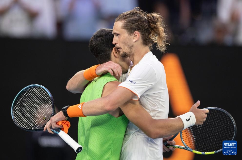 1月30日,阿尔卡拉斯(左)与兹维列夫赛后拥抱。
