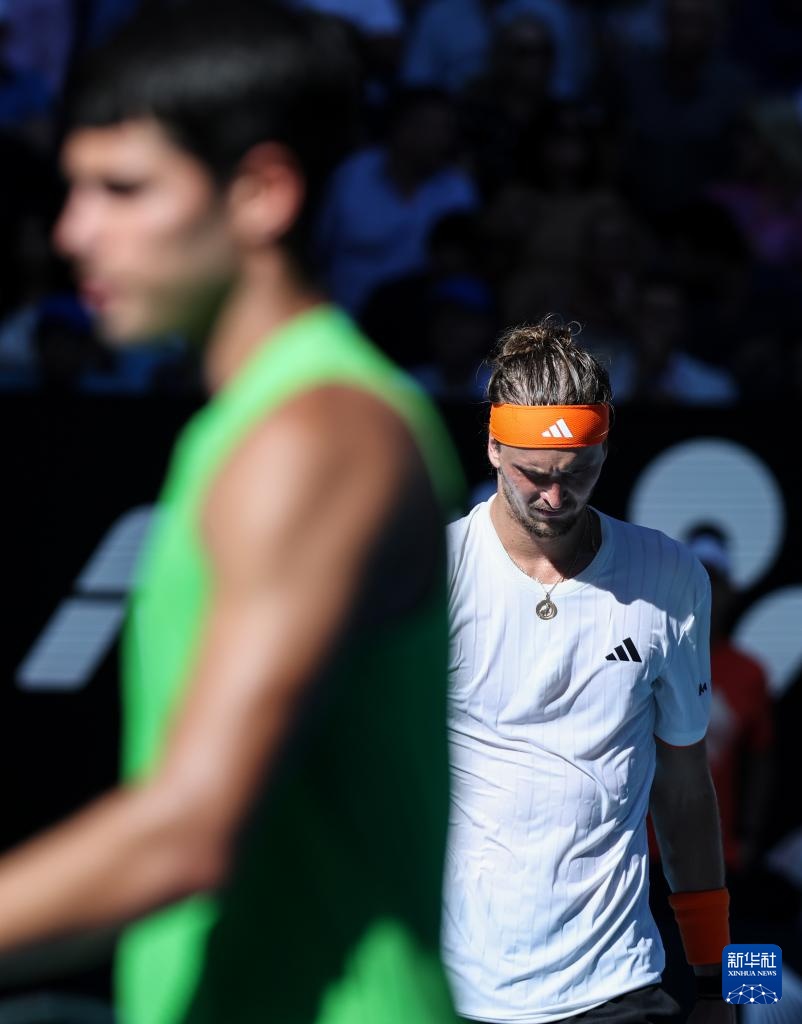 1月30日,兹维列夫(后)和阿尔卡拉斯在比赛间隙。