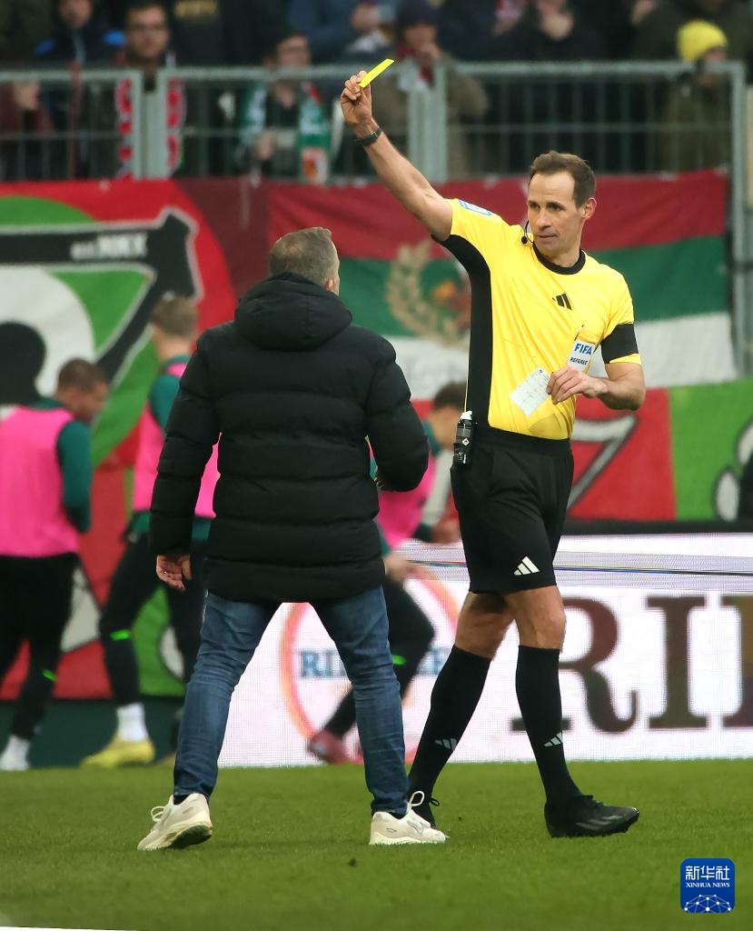1月31日,奥格斯堡队主教练鲍姆(左)被裁判出示黄牌。