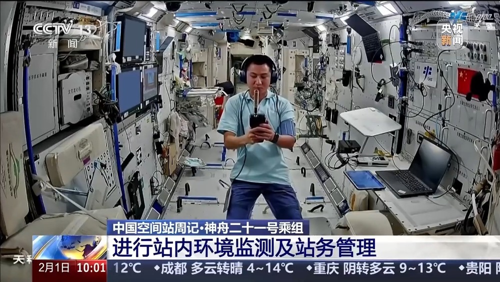 在站内环境监测及站务管理方面,乘组完成了风速及温度测量、个人噪声暴露剂量测量、舱内环境整理等多项工作,持续守护太空家园的宜居环境。