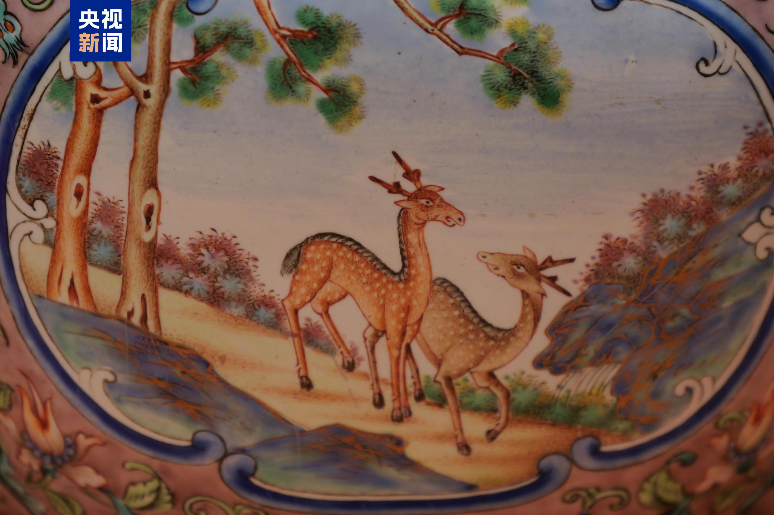 这个手炉上画了两只小鹿