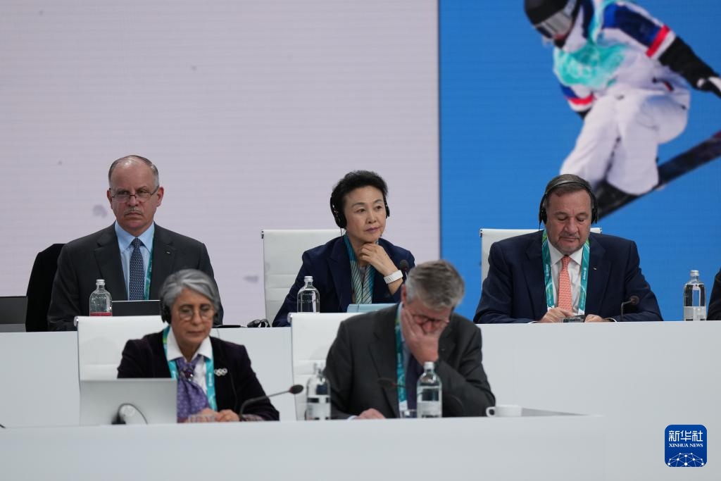 2月3日,国际奥委会执委李玲蔚(后排中)在会上。