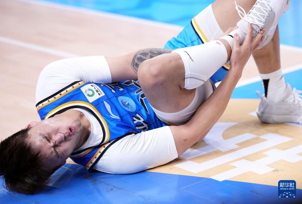 2月3日,北京北汽队球员赵睿在比赛中受伤倒地。