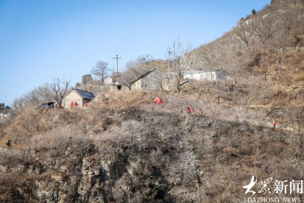 山路蜿蜒,大家互相鼓励上山进村。