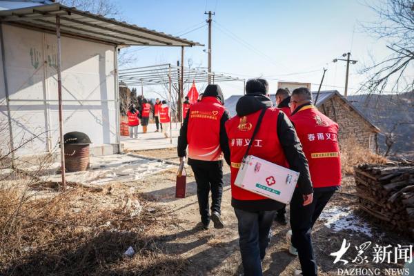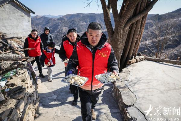 2月8日,寒潮侵袭,最低气温降至零下8度,凛冽的寒风没能阻挡志愿者们前行的脚步。他们再次踏上崎岖山路,奔赴杨集庵村,为老人们送上冬日里最温暖的关怀。此次行动中,志愿者们不仅带来了常用药品,邀请医护人员为老人送医诊疗,还携带着爱心企业捐赠的暖心礼品,以及面粉、馅料等包水饺的食材,让深山里的“小年”充满烟火气。