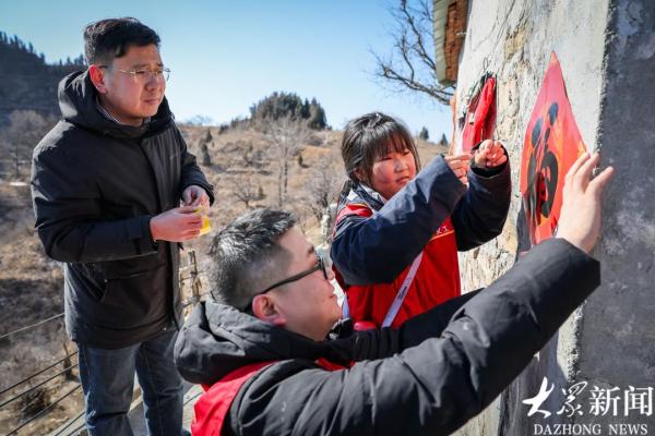 志愿者来到村民家里,给贴上福字、春联。