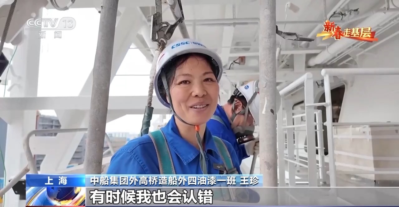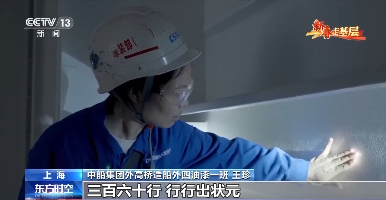 中船集团外高桥造船外四油漆一班 王珍:三百六十行,行行出状元。不知道我是不是那个状元,但是我用心去做,还是挺喜欢的、挺热爱的。