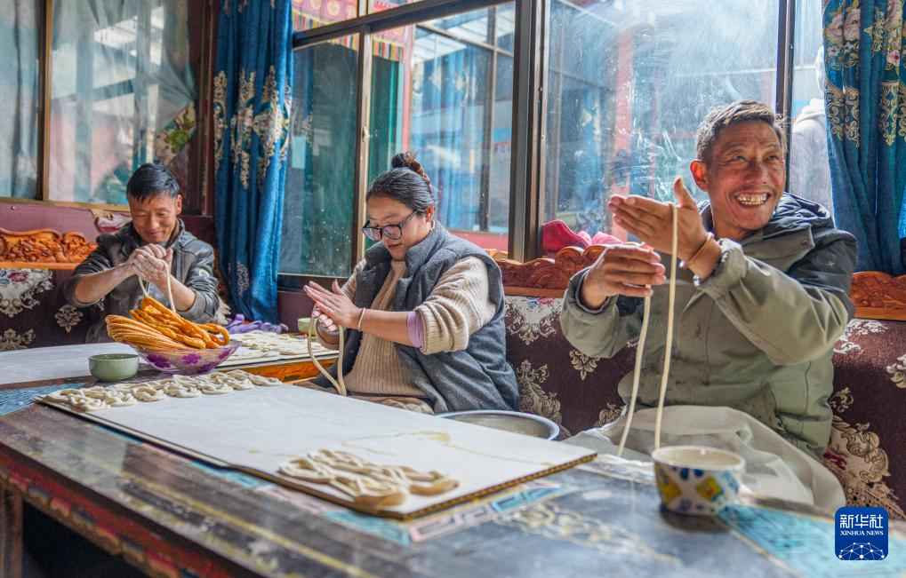 2月5日,玉麦乡乡民在家里制作过年吃的传统面食“卡赛”,迎接即将到来的藏历新年。新华社记者 丁增尼达 摄