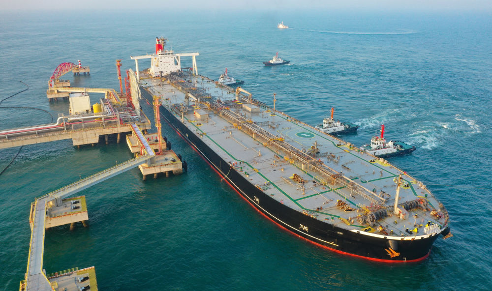 2025年12月18日,一艘装载着石化原辅料的外籍船舶泊入位于海南省儋州市的国投洋浦油储码头30万吨级原油泊位(无人机照片)。自2025年12月18日起,海南自由贸易港正式启动全岛封关。