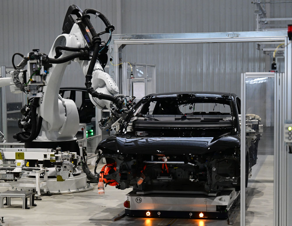 2025年7月1日在合肥市新桥智能电动汽车产业园蔚来第二工厂拍摄的新能源汽车生产线。