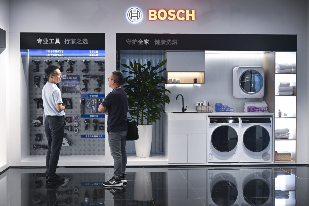 2025年9月10日,在上海虹桥临空经济示范区内的博世公司展厅,来访者在展品前交流。