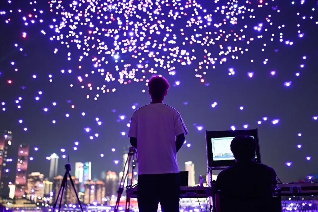 无人机演绎绚丽“烟花”