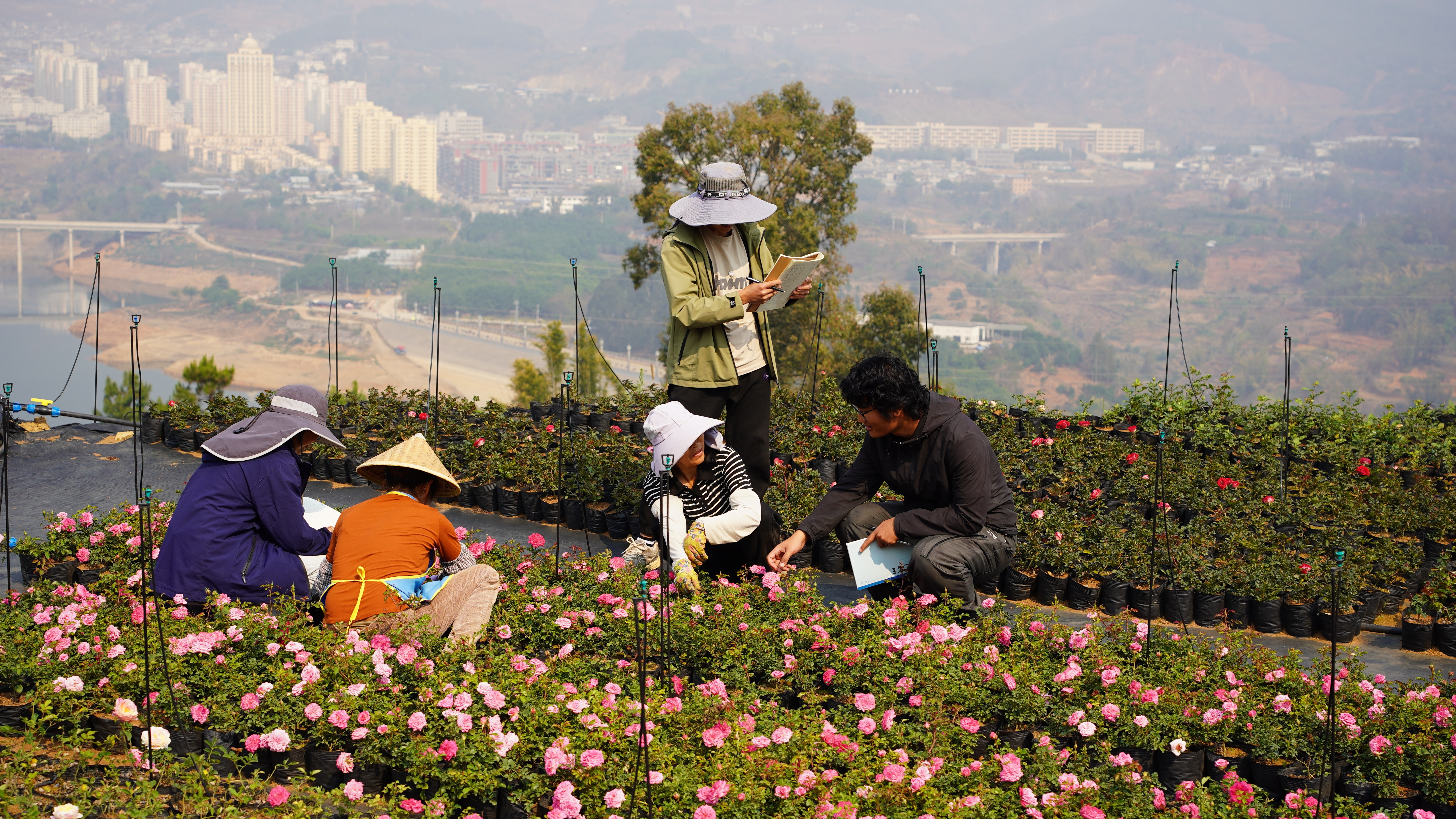 解码“芯片”,在深山里守护繁花根基。产业要兴旺,种业是根基。永德县瞄准喜马拉雅到横断山脉、三江并流到两江流域这一全球月季种质资源核心分布区,建立香水月季种质资源基因库,在这里,一项关乎中国月季“芯片”的坚守正在持续上演。2022年,永德县引入春城产业导师李淑斌博士月季育种团队成立花香(永德)科技研发有限公司,以永德大雪山香水月季资源的开发利用和老百姓增收为出发点,致力于永德香水月季产业“种业芯片”研发和全产业链孵化,项目总投资5000万元,建设全国最大的香水月季种质资源基因库。“通过这几年的努力,我们已经建成了包括2000个园艺品种、几百种野生材料的基因库,有些还是永德特有的。”李淑斌博士介绍,如今,这支年轻的团队在永德已保存10余万份育种材料,年育种规模达60万粒,申报自主知识产权品种100个,依托永德得天独厚的自然气候条件,走出一条低能耗,可持续的高端无土切花栽培模式,获批建设全省花卉领域唯一的种业新型研发机构。