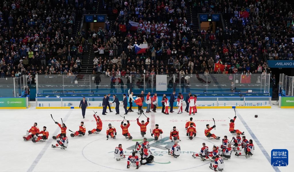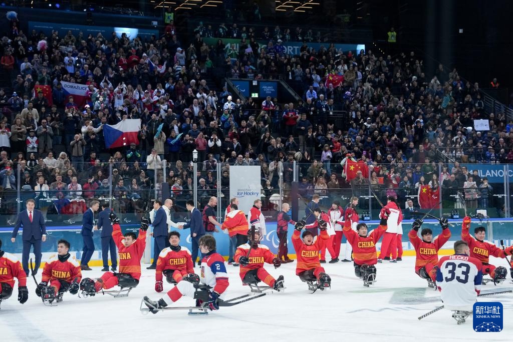 当地时间3月15日,在意大利米兰举行的米兰-科尔蒂纳冬残奥会残奥冰球铜牌赛中,中国队3比2战胜捷克队,夺得季军。