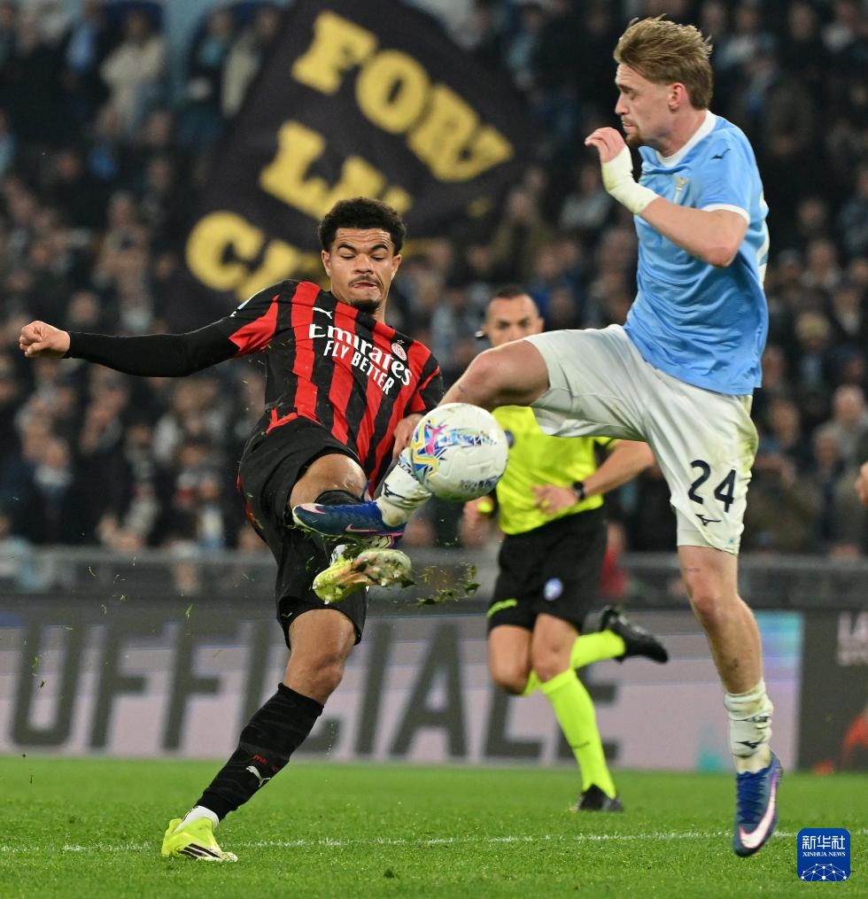 3月15日,拉齐奥队球员泰勒(右)与AC米兰队球员阿特卡梅在比赛中拼抢。