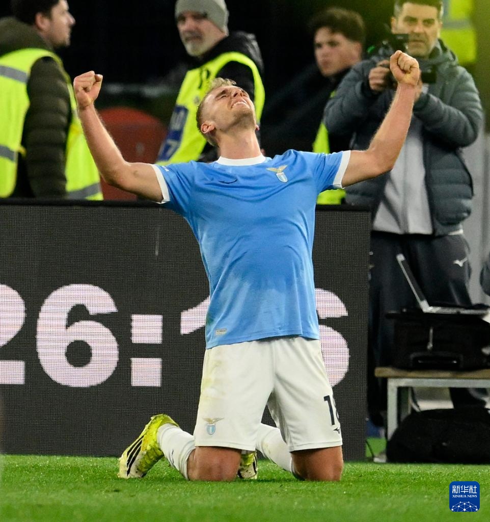 3月15日,拉齐奥队球员伊萨克森庆祝进球。